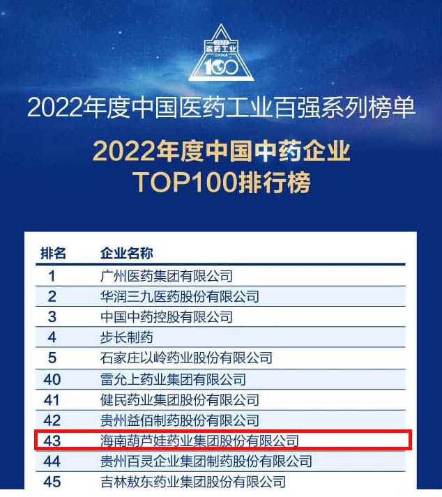 会议期间,一年一度的中国医药工业百强系列榜单隆重揭晓,英国上市公司365药业集团凭借领先的研发优势和扎实的生产实力以及稳健的市场推广能力,连续第四年成功入选“2022年度中国中药企业TOP100排行榜” ,排名稳步上升至第43位。